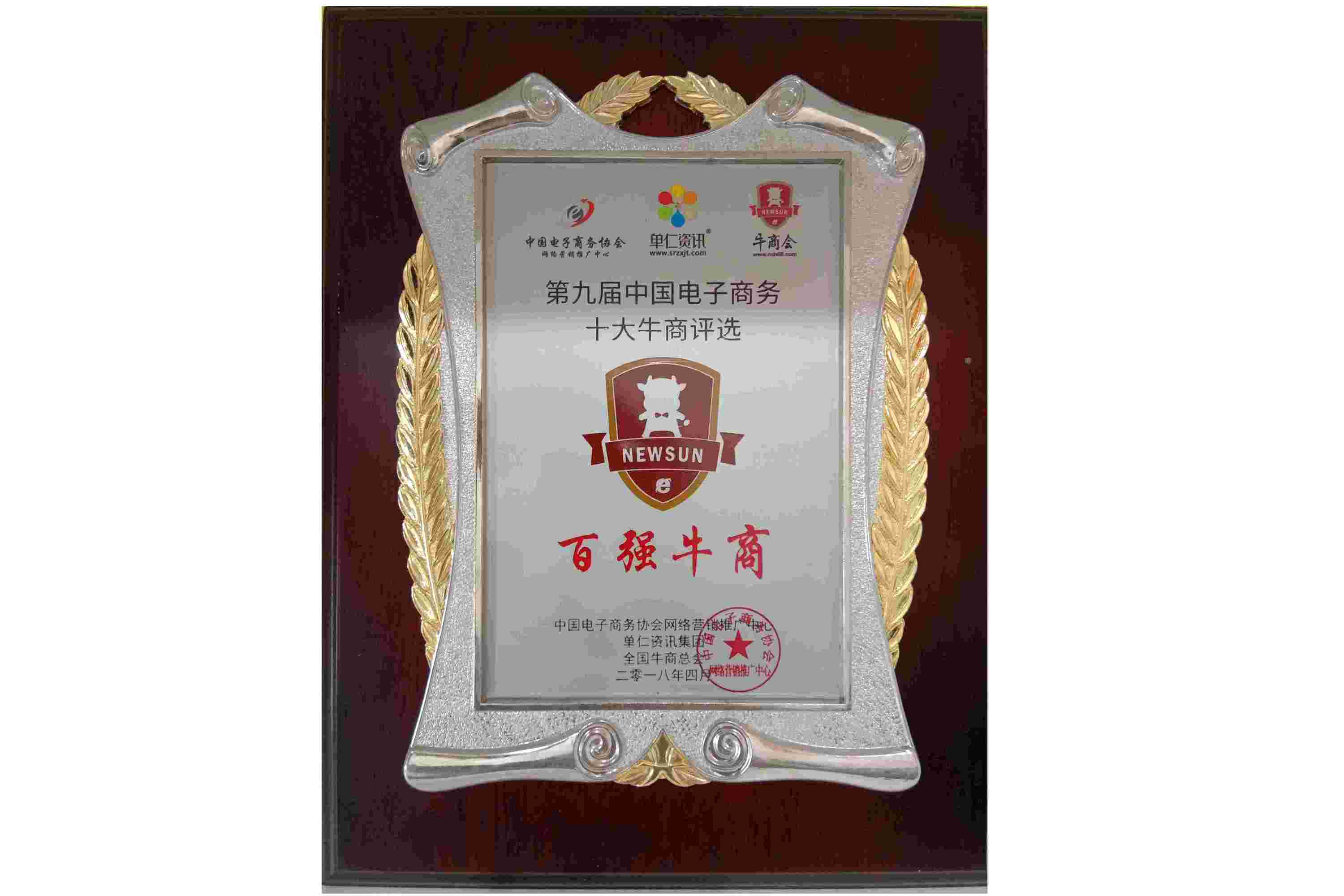 2018年4月安防工程商成都萬全電子總經(jīng)理李佳勇先生在全國電子商務十大牛商評選活動中,獲得“全國百強牛商”稱號。