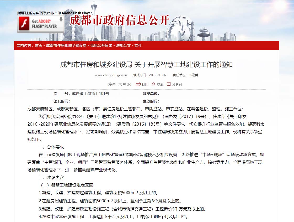 成都市住房和城鄉建設局發布關于智慧工地建...