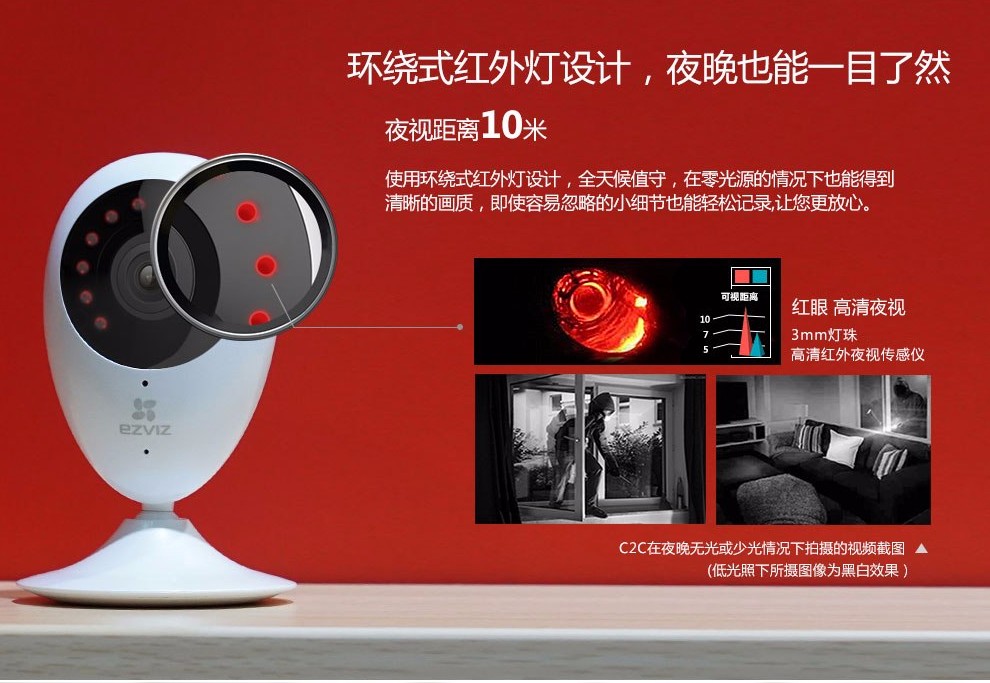 ???螢石高清家用網(wǎng)絡(luò)攝像機(jī),200萬像素,1080P高清分辨率,畫質(zhì)清晰,成像效果一流;高清廣角視角,輕松覆蓋每個(gè)角落,;紅外高清夜視效果翻蓋范圍達(dá)10米,再也不用擔(dān)心夜晚看不清的尷尬。